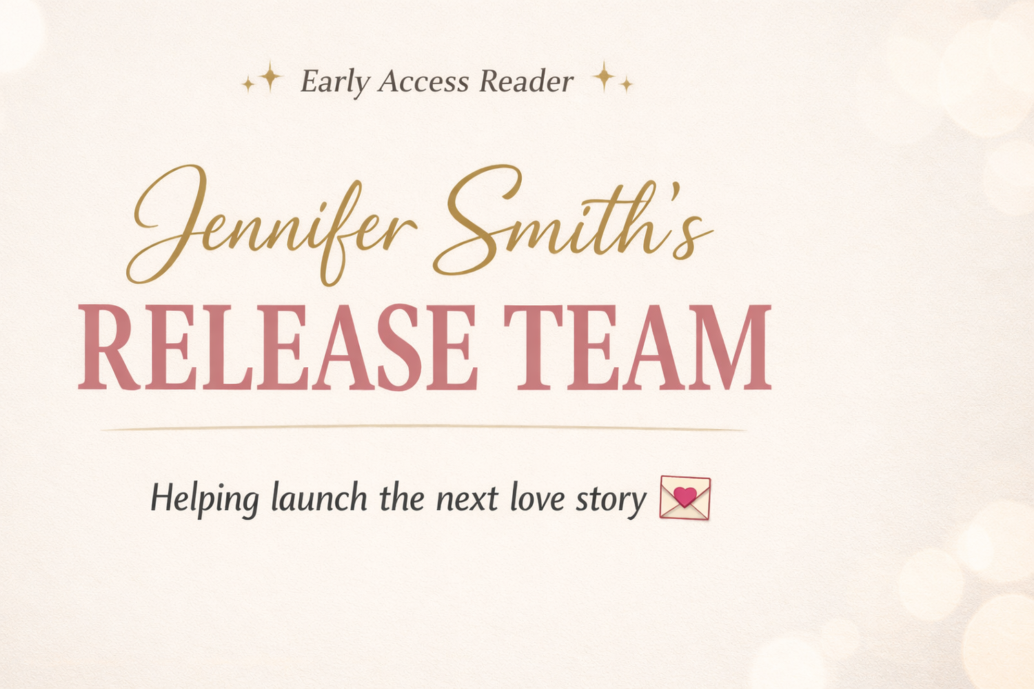 Jennifer Smith’s Release Team is a group of dedicated readers who receive early access copies of upcoming books in exchange for honest reviews and helping spread the word during launch week.